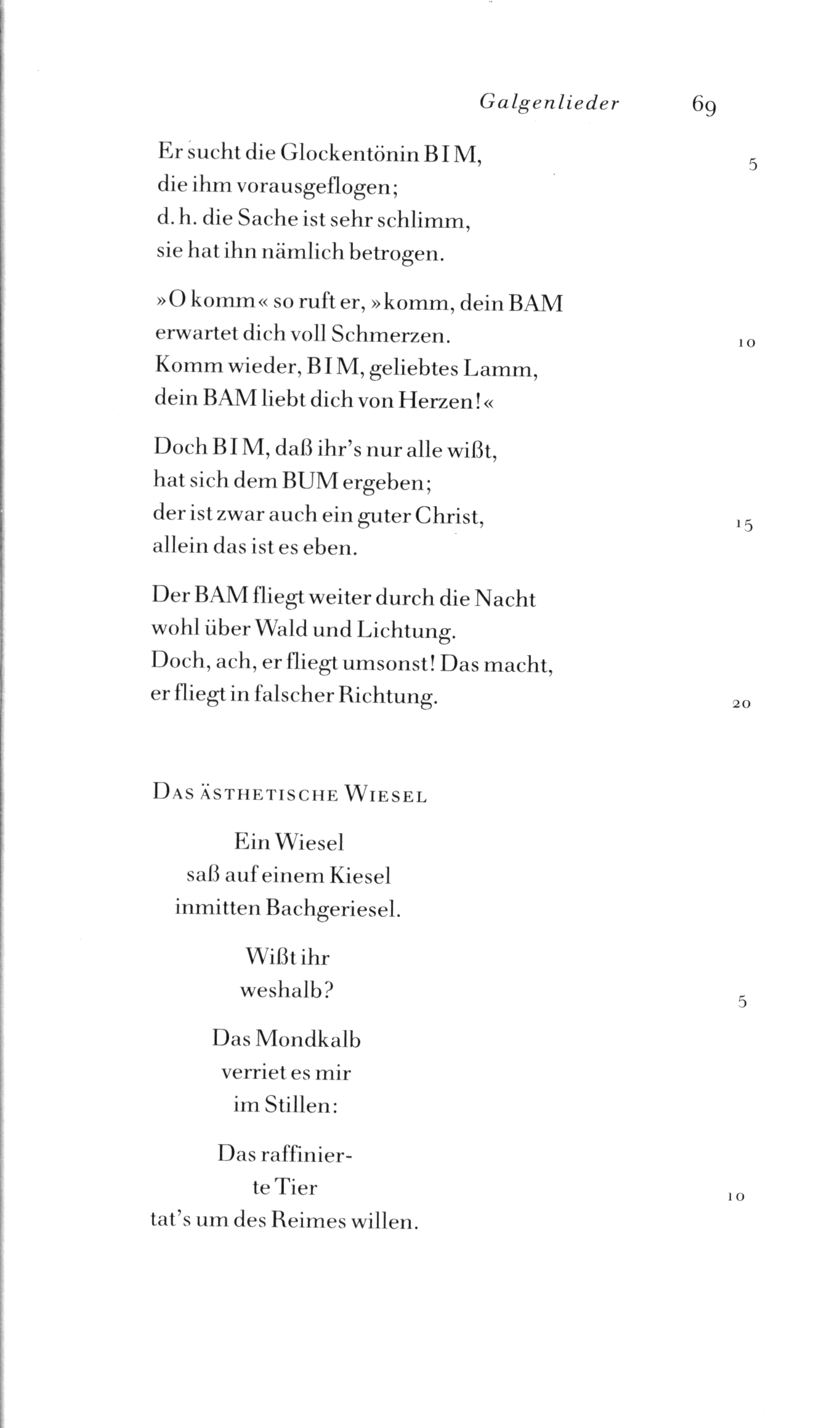 Quelle: Christian Morgenstern - Werke und Briefe - Kommentierte Ausgabe - Bd III - Humoristische Lyrik - Urachhaus 1990. Der Band ist gemeinfrei.