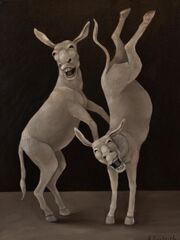 | 01:16, 7. Jan. 2026 | Anna Gestrich Christian Morgenstern Die beiden Esel.jpg (Datei) | 73 KB | UweS (Diskussion | Beiträge) | © 2014 | Öl auf Leinwand, 30 x 40 cm '''Die beiden Esel''' Ein finstrer Esel sprach einmal<br> zu seinem ehlichen Gemahl:<br> »Ich bin so dumm, du bist so dumm<br> wir wollen sterben gehen, kumm!»<br> Doch wie es kommt so öfter eben:<br> Die beiden blieben fröhlich leben. | 1 | |
