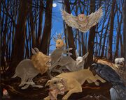 | 01:13, 7. Jan. 2026 | Anna Gestrich Christian Morgenstern Gruselett.jpg (Datei) | 526 KB | UweS (Diskussion | Beiträge) | © 2014 | Öl auf Leinwand, 100 x 80 cm '''Drei Hasen – Eine groteske Ballade''' Drei Hasen tanzen im Mondschein<br> im Wiesenwinkel am See:<br> Der eine ist ein Löwe,<br> der andre eine Möwe,<br> der dritte ist ein Reh. Wer fragt, der ist gerichtet,<br> hier wird nicht kommentiert,<br> hier wird an sich gedichtet;<br> doch fühlst du dich verpflichtet,<br> erheb sie ins Geviert,<br> und füge dazu den Purzel<br> von einem Purzelbaum,<br> und zieh aus dem Ganzen die Wurzel<br> und träum den Extr… | 1 | |
